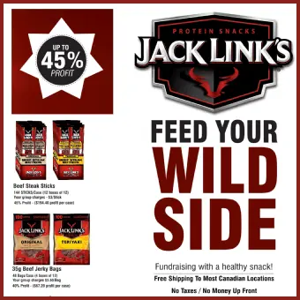 All your favorite selections from Jack Links are now available for your group to use as a fundraiser. What a great way to provide a healthy fundraising option and the quality of beef jerky. This program can be run both offline and online. Sell our 28g Beef Steak and/or 35g Beef Jerky Bags in Original or Teriyaki flavours.